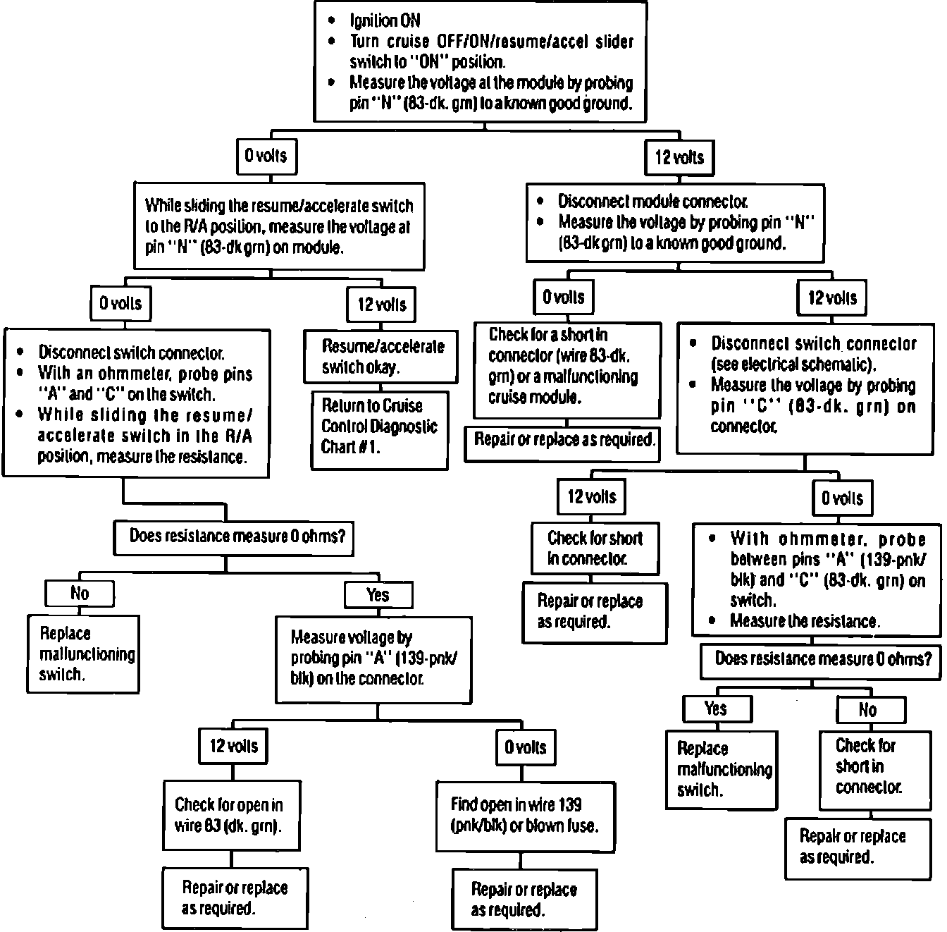 Chart 4, Cruise "Off/On/Resume/Accel" Switch Test: