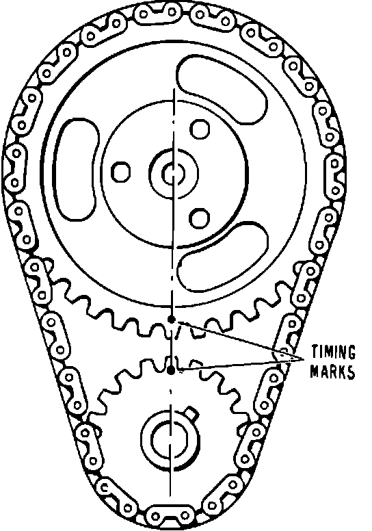 3. Position timing marks on sprockets as shown Fig. 28.