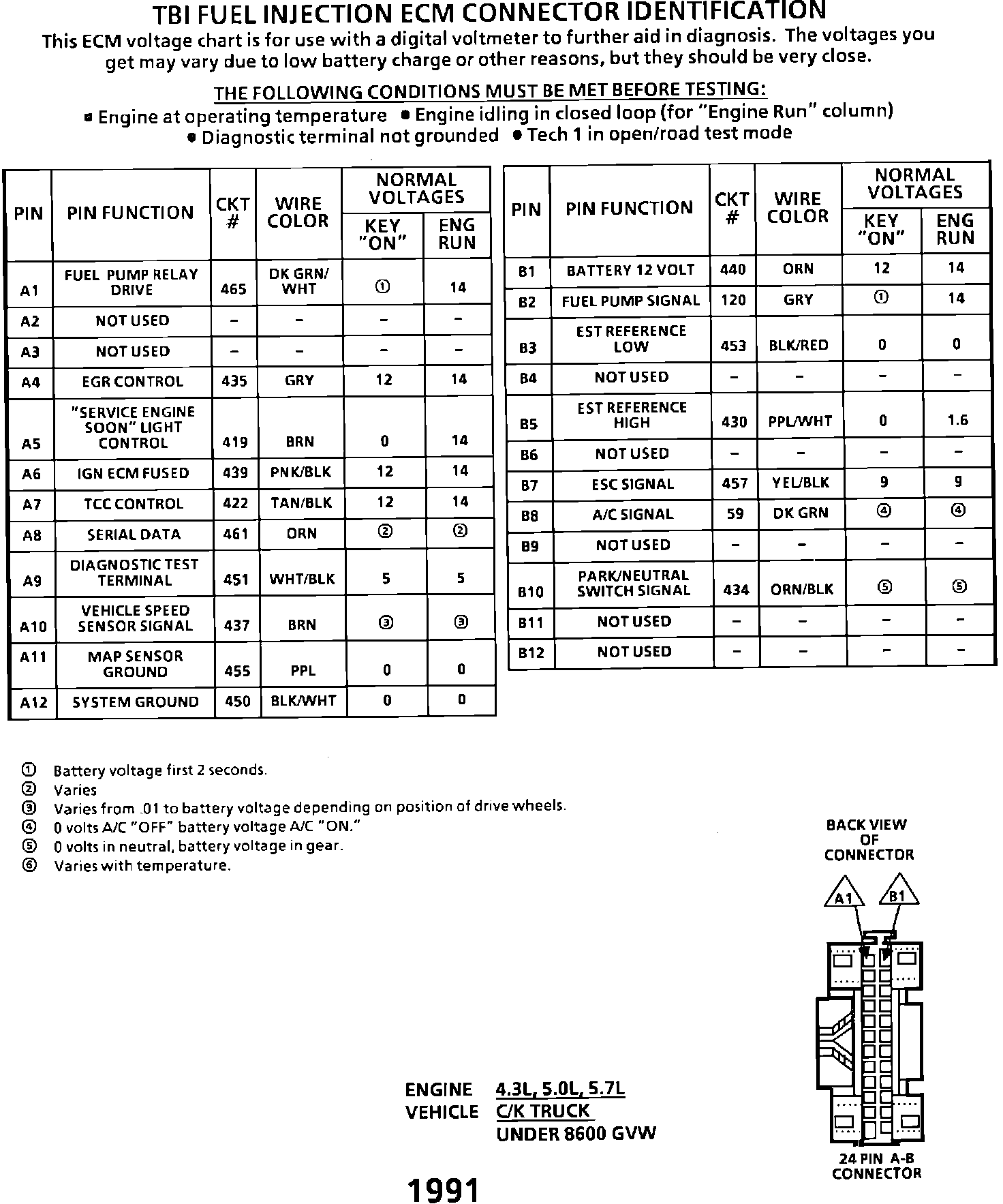 ECM Connector Terminal End View: