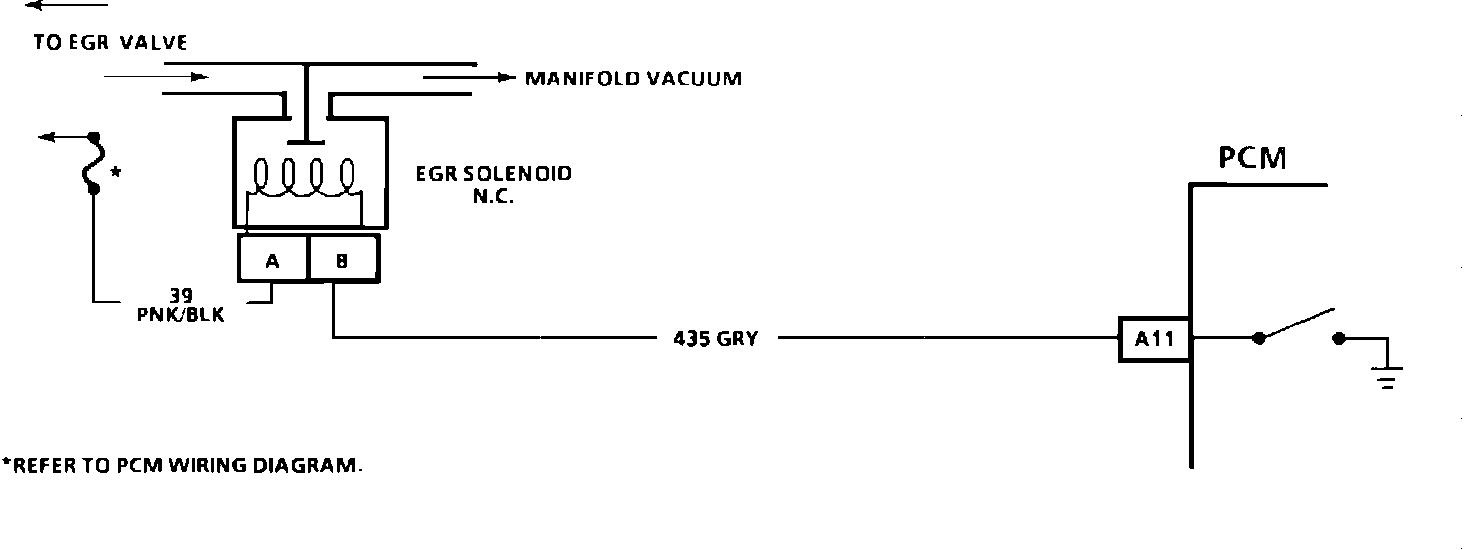 1. By grounding the diagnostic terminal, the EGR solenoid should be energized and allow vacuum to be applied to the EGR valve and the vacuum should hold.