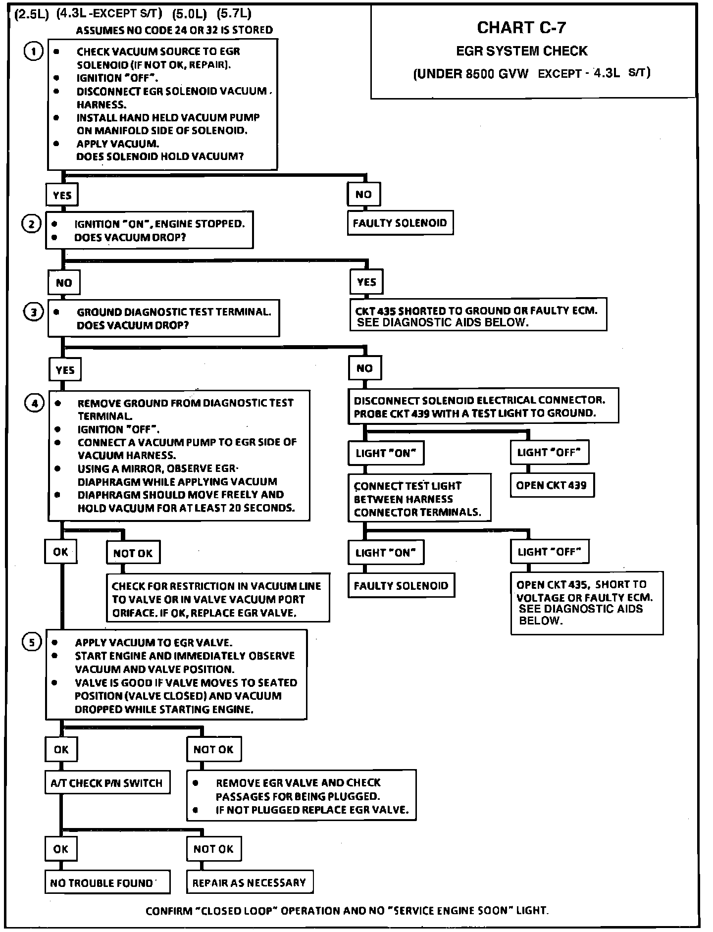 EGR System Flow Chart For 2.5L, 4.3L-Except S/T, 5.0L, 5.7L, (Under 8500 GVW):