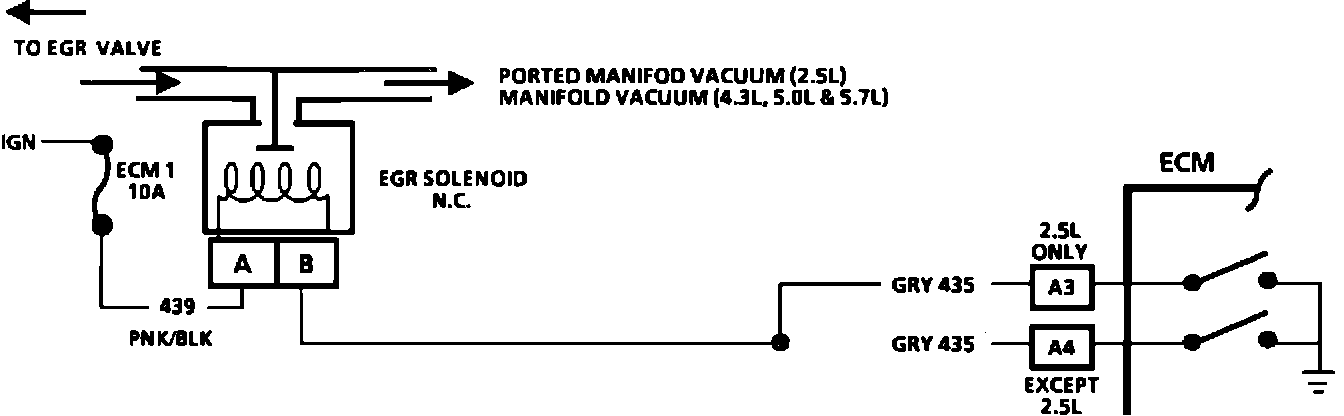 EGR System Wiring For 2.5L, 4.3L-Except S/T, 5.0L, 5.7L, (Under 8500 GVW):