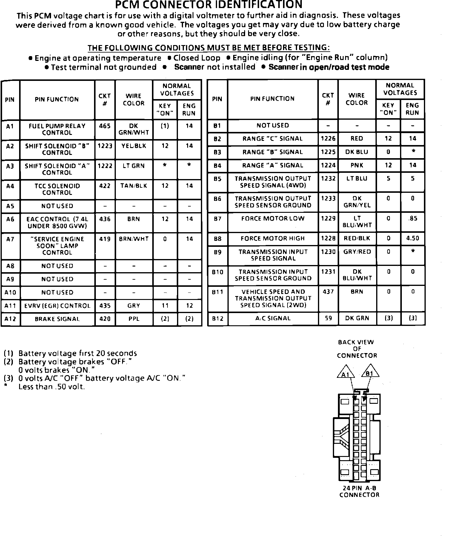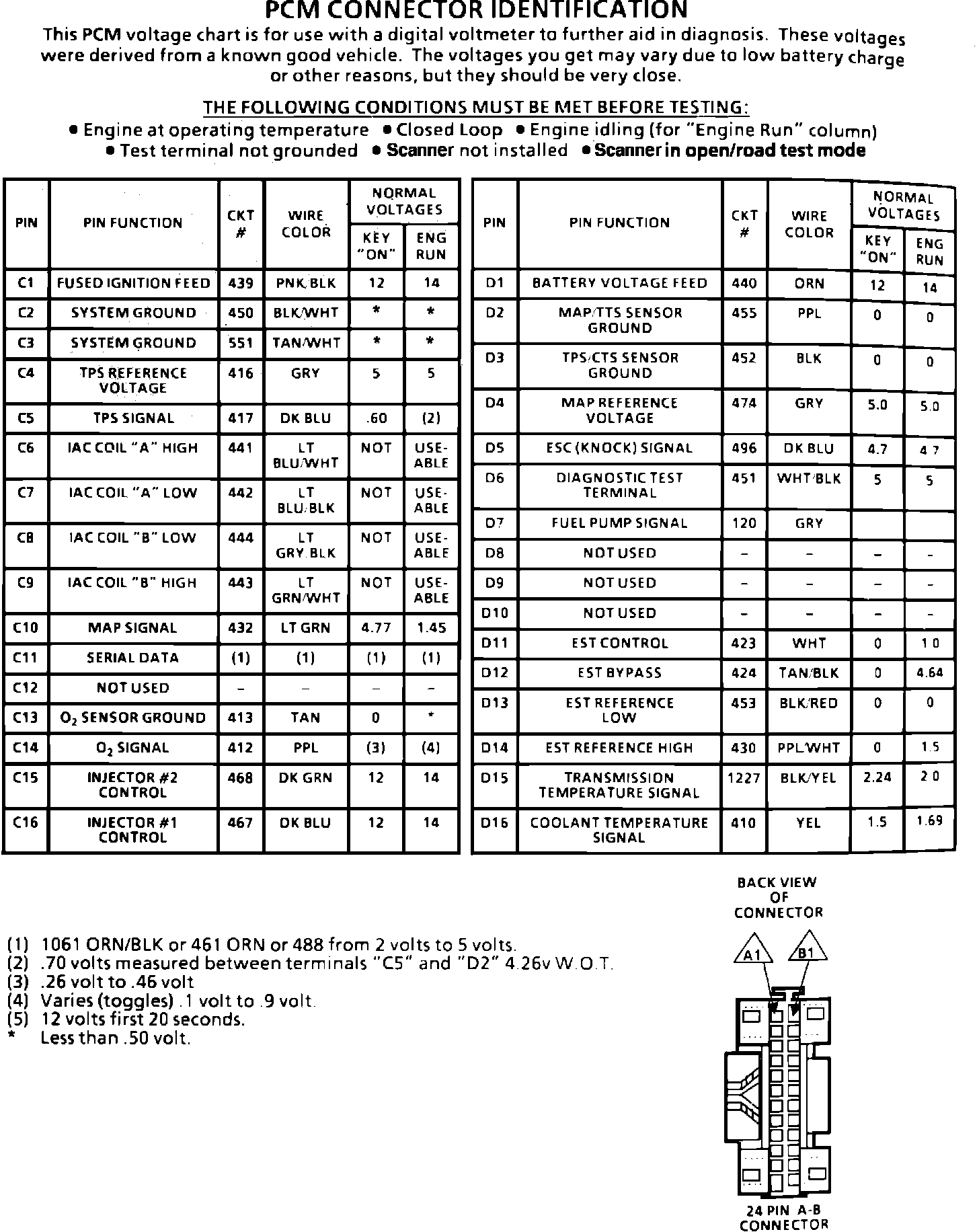 PCM Terminal Identification And Voltage Specification Part 2 Of 2:
