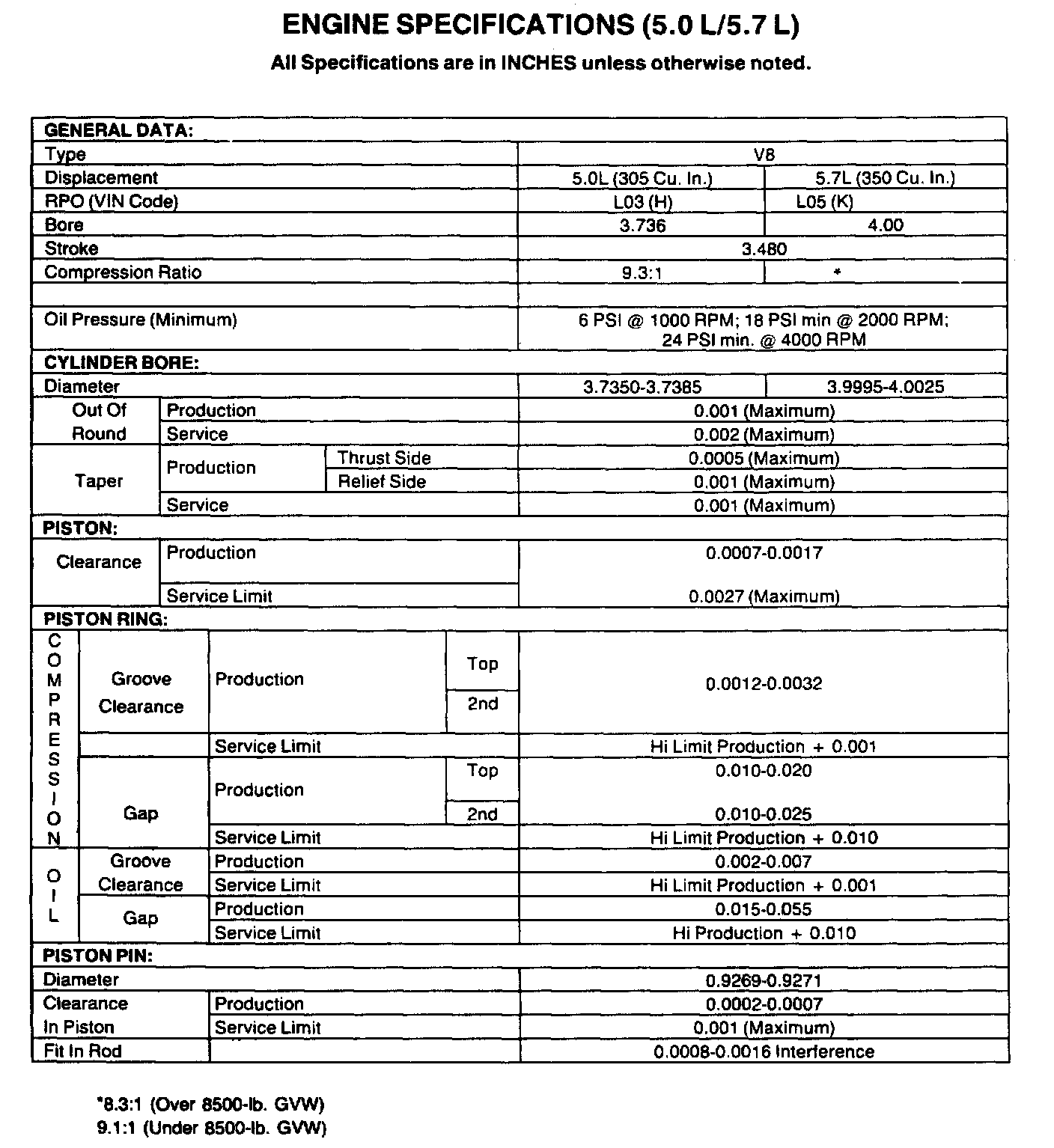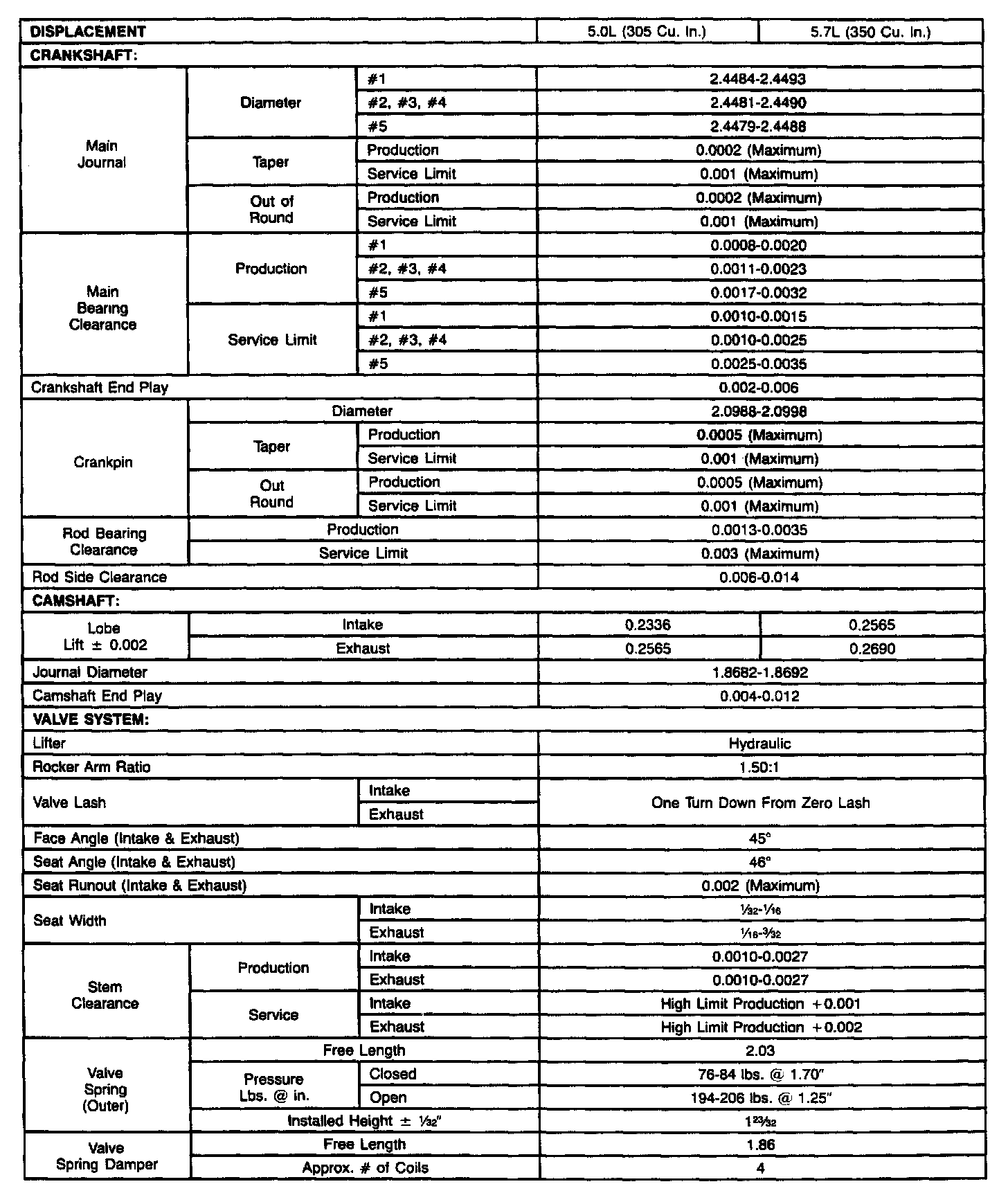 Continued Engine Specifications:
