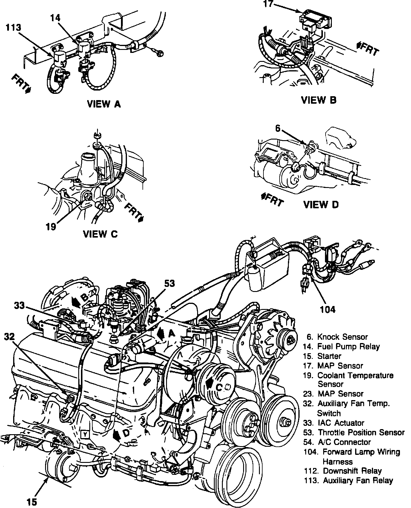 104 = FORWARD LAMP WIRING HARNESS.