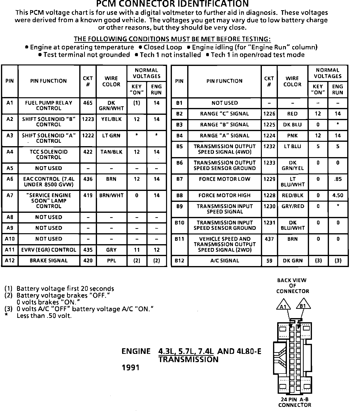 PCM Connector End View Equipped W/4L80-E Trans (Part 1 Of 2):