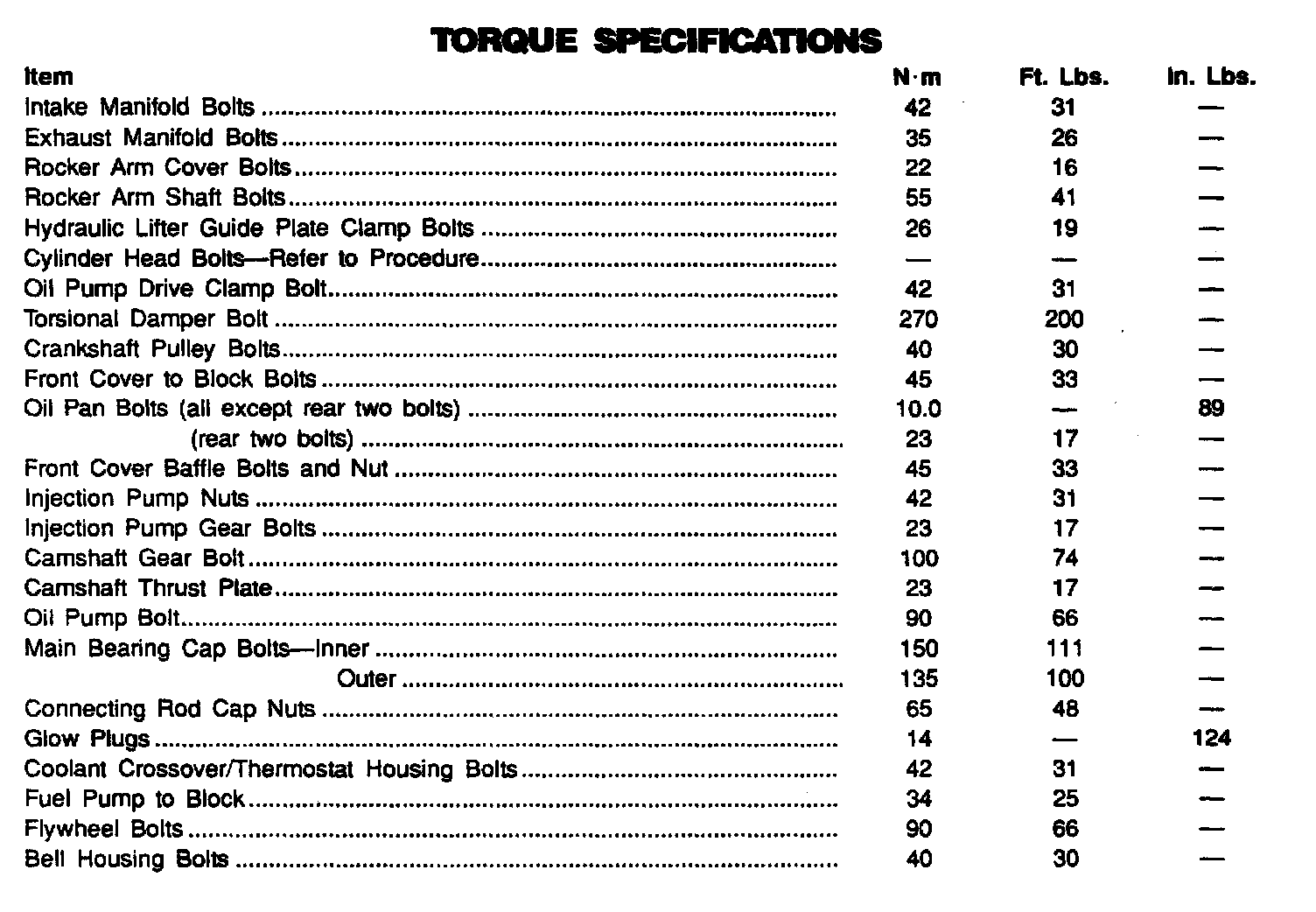Torque Specifications: