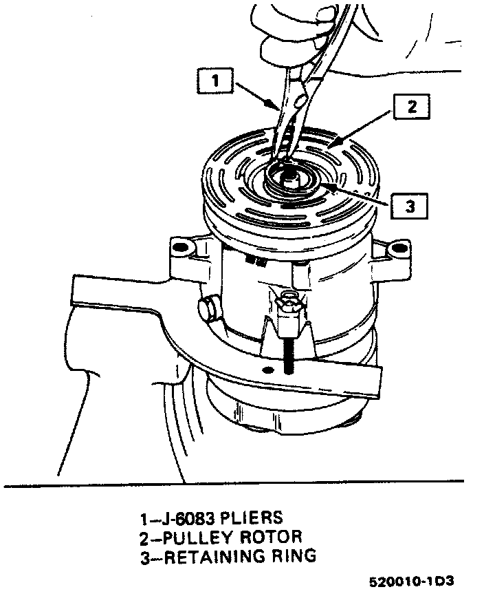 Removing Pulley Rotor & Bearing Assembly Retaining Ring: