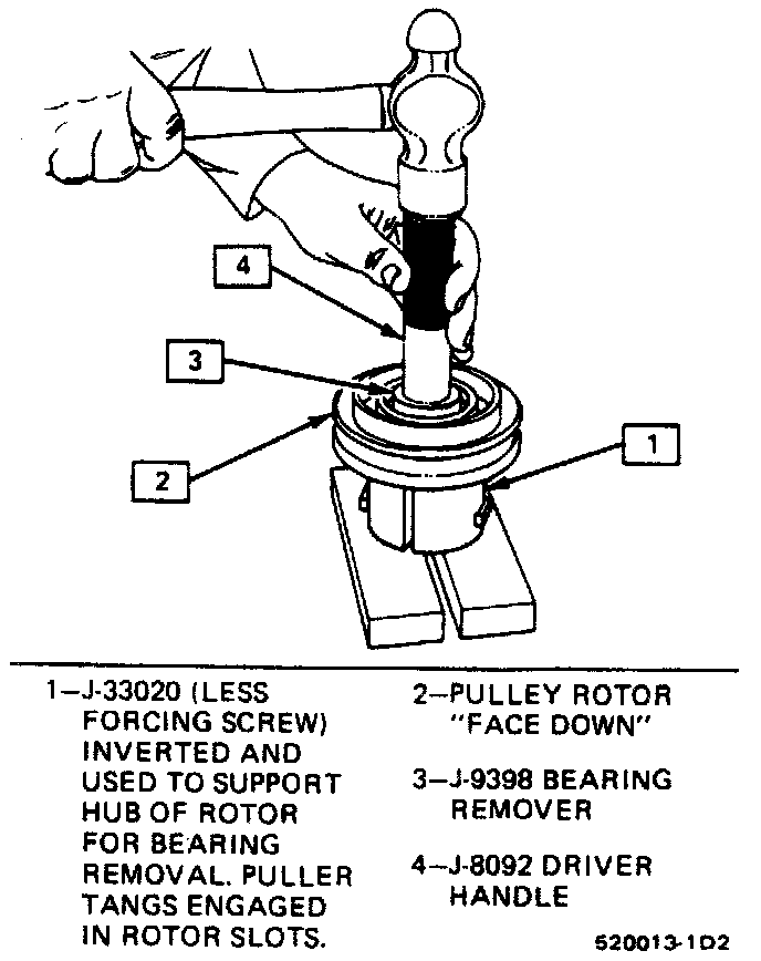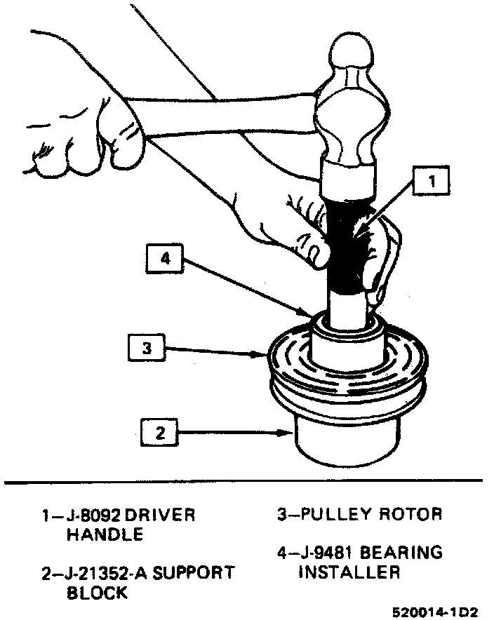 1. Place the pulley rotor on the J-35372 support block to fully support the rotor hub during bearing installation.