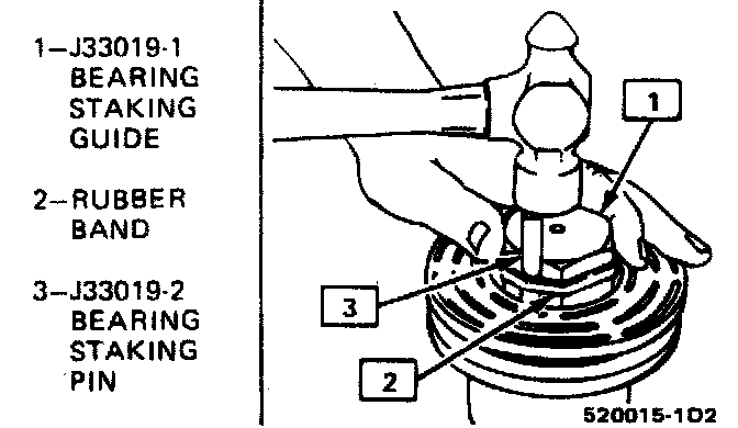 4. Using care to prevent personal injury, strike the staking pin with a hammer until a metal stake, similar to the original, is formed down to but not touching the bearing.