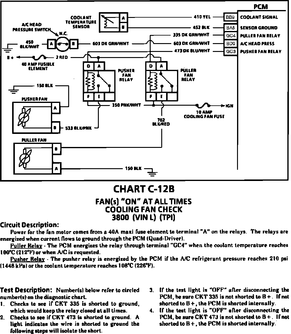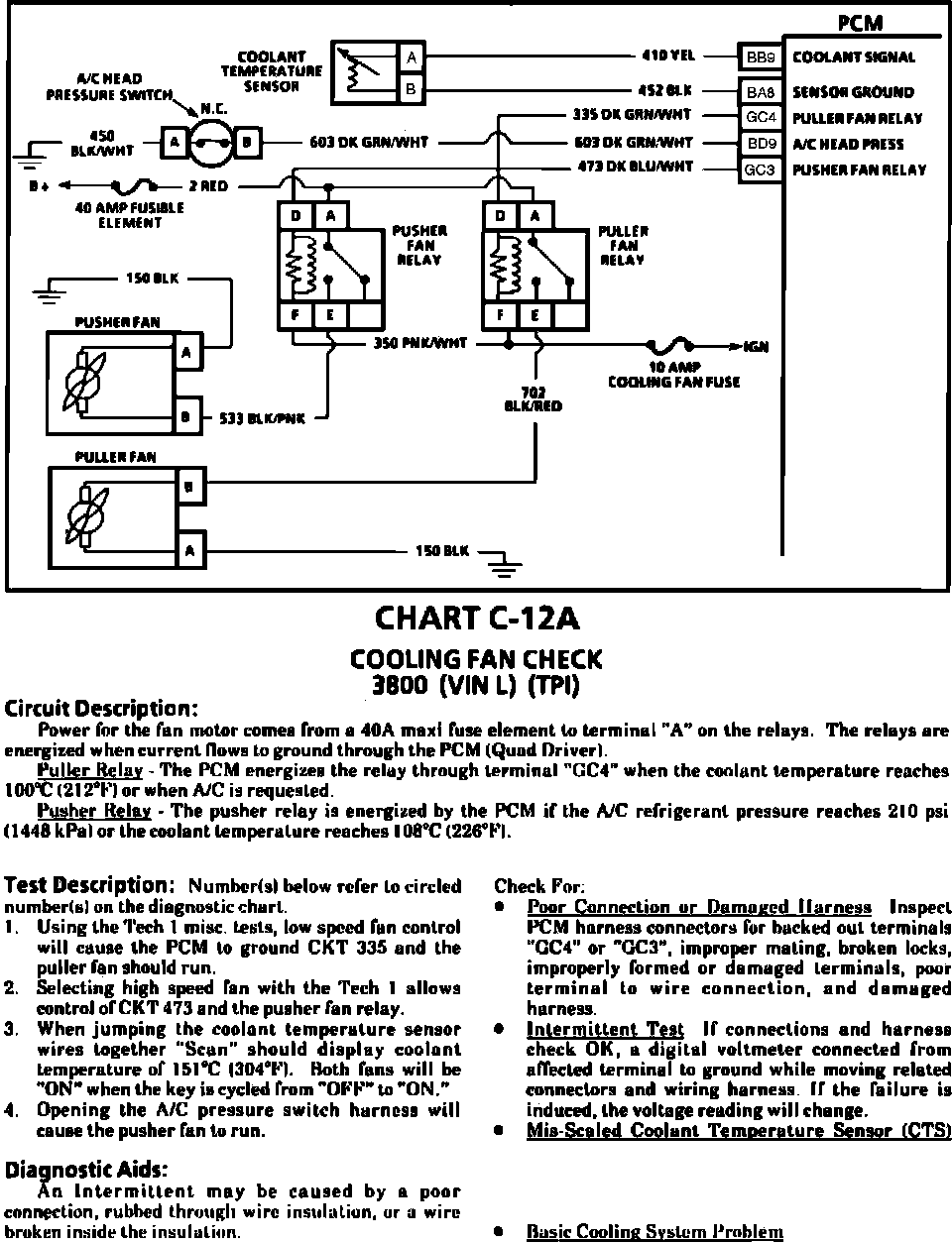 Chart C-12A, (Cooling Fan Check) VIN L: