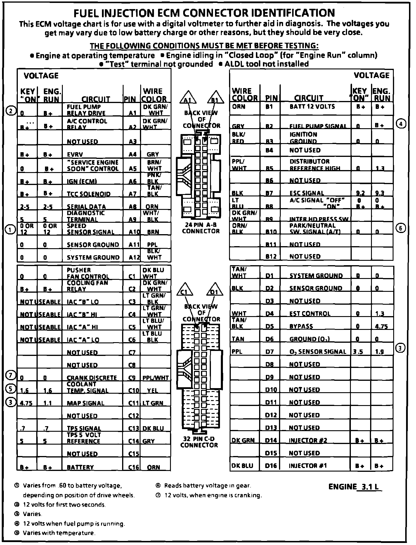 ECM Terminal Identification And Voltage Specification: