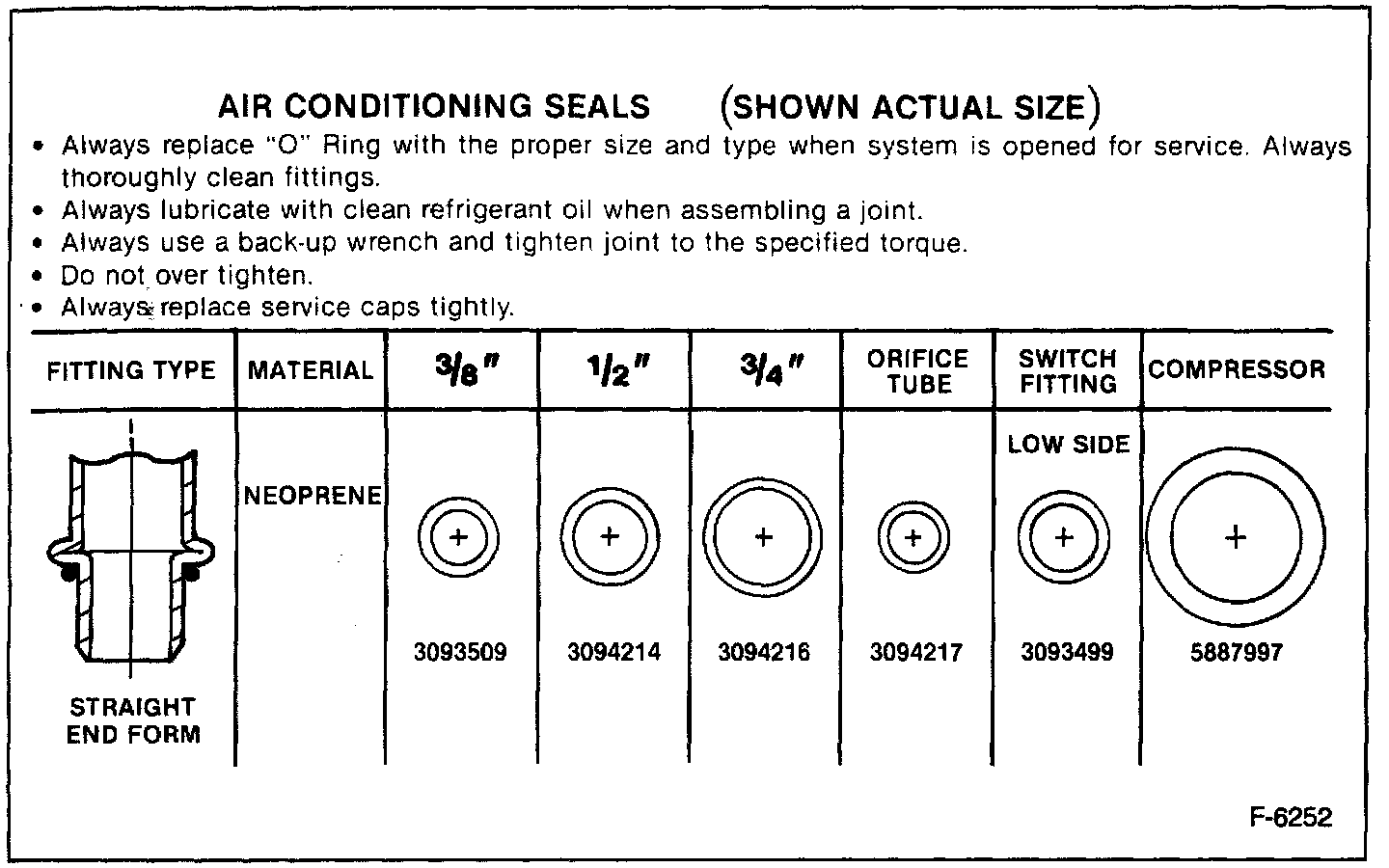Use new seal (O-ring) dipped in the clean 525 viscosity refrigerant oil when assembling joints. The oil will aid in assembly and help provide a leak-proof joint.
