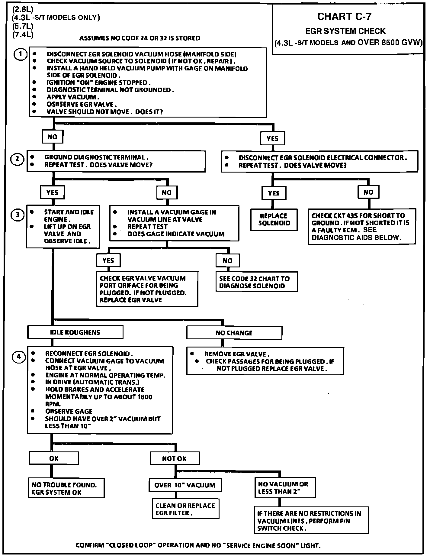 EGR System Flow Chart For 4.3L-S/T and 2.8L, 7.4L, 5.7L over 8500 GVW.: