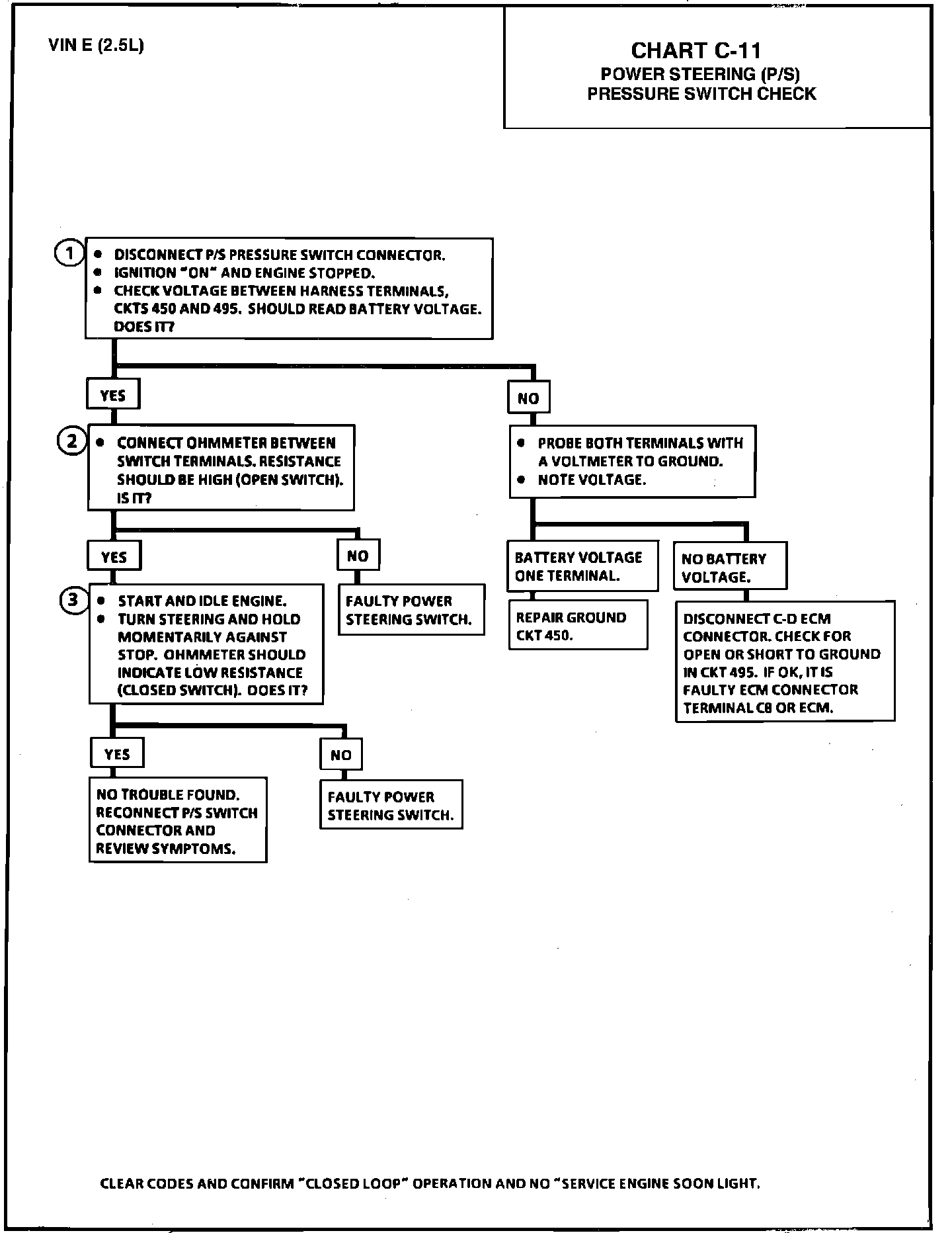 POWER STEERING (P/S) PRESSURE SWITCH CHECK (CHART C-11)