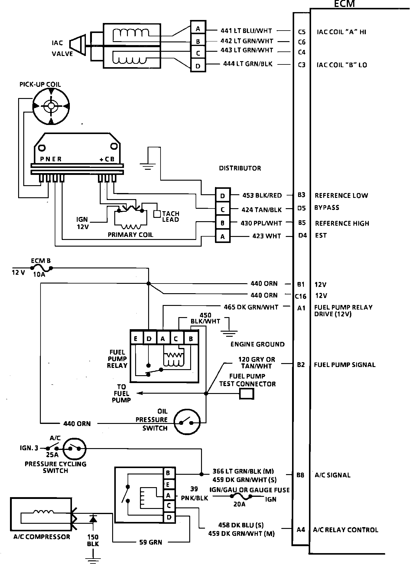 A1 = FUEL PUMP RELAY DRIVE (12V).