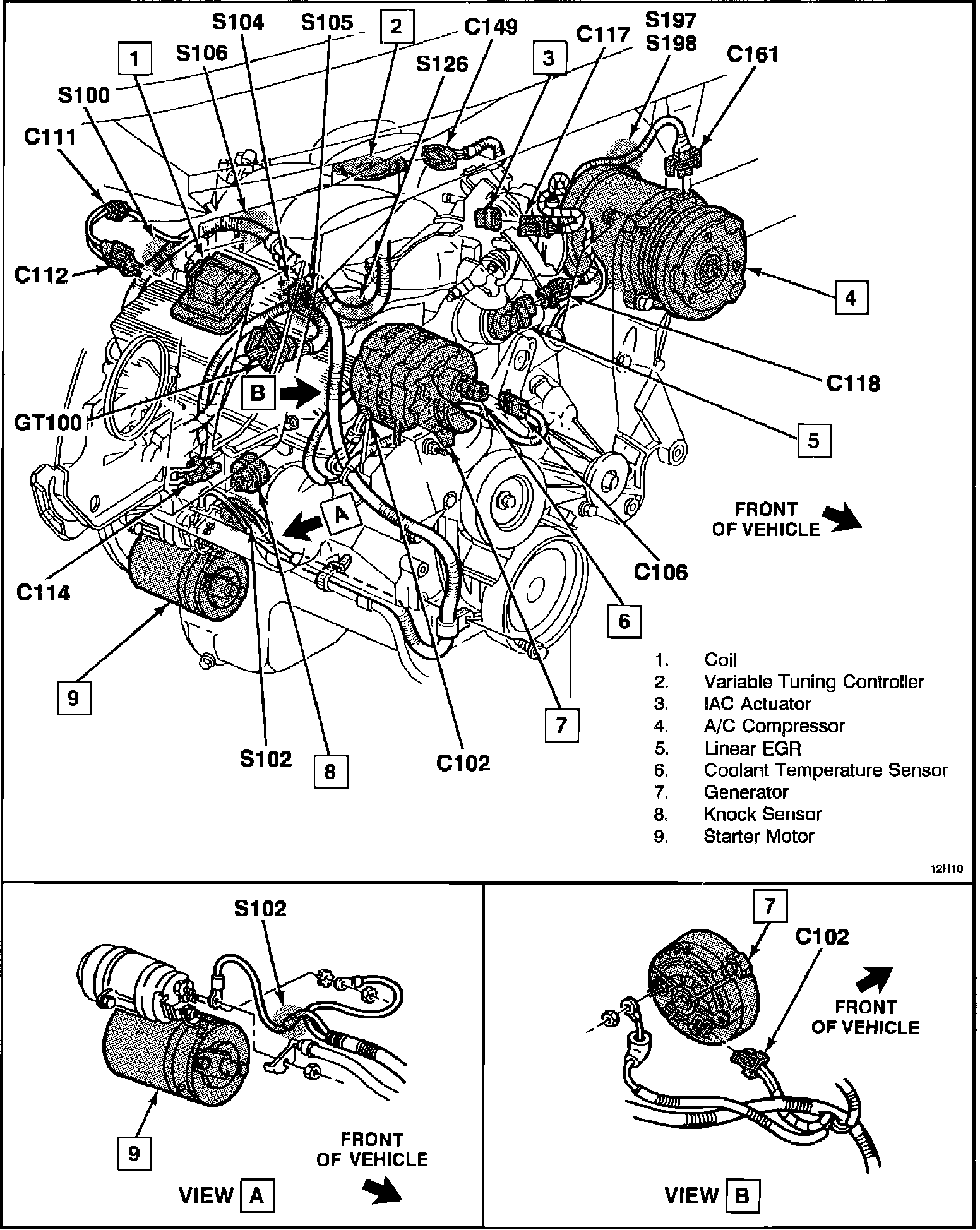 Coolant Temperature Sensor/Switch (For Computer): Locations