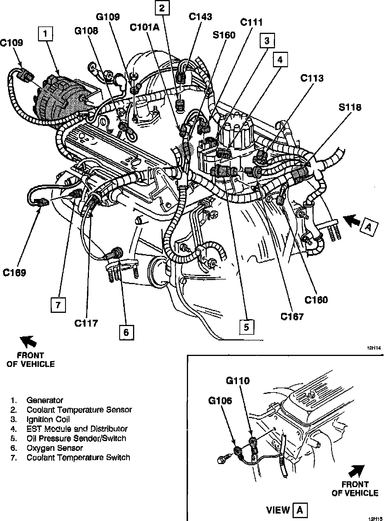 LH top front of engine