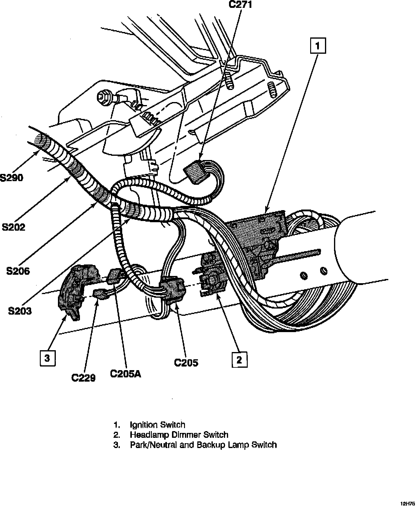 LH Side Of Steering Column: