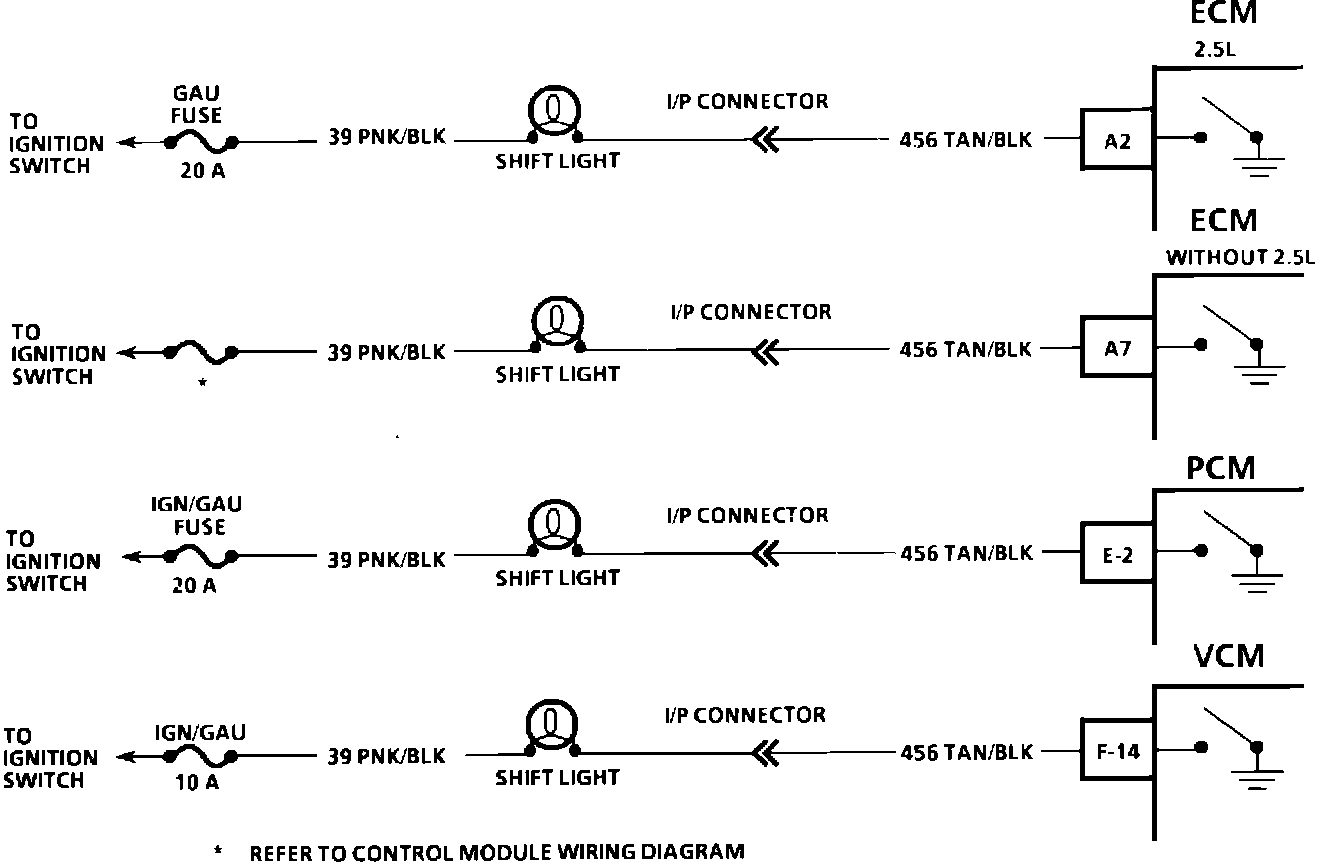 The control module uses information from the following inputs to control the shift light:
