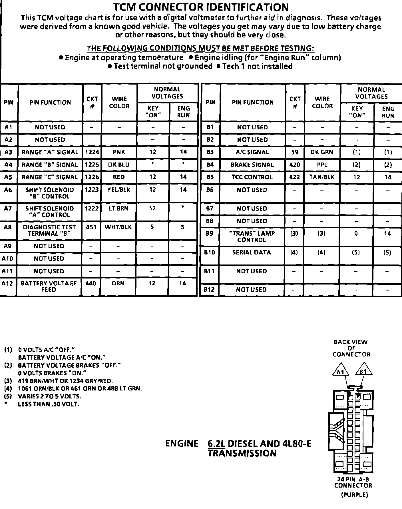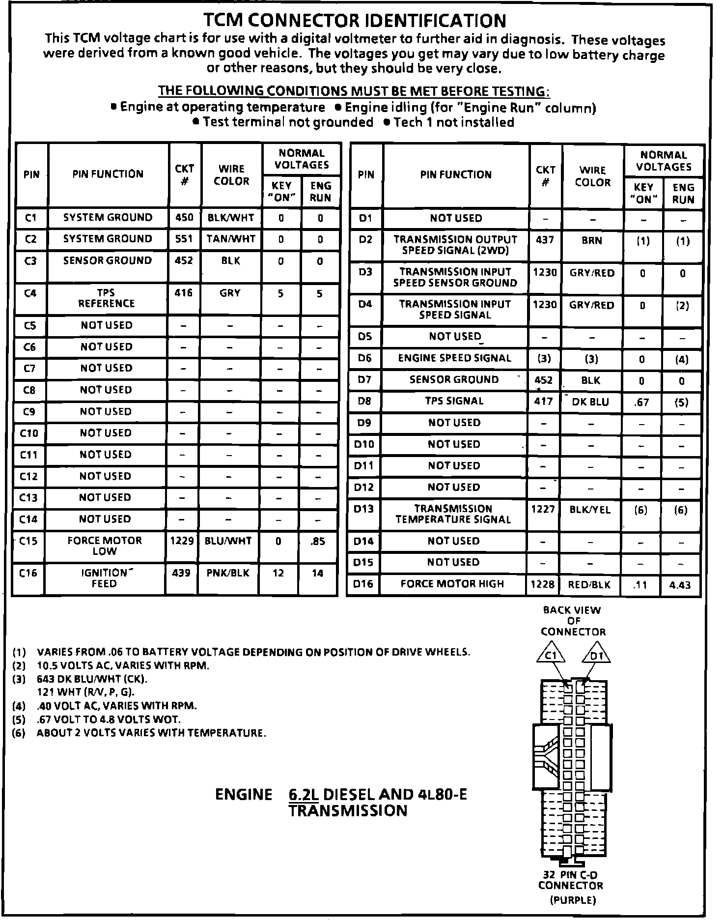 TCM Connector Terminal Pinouts: