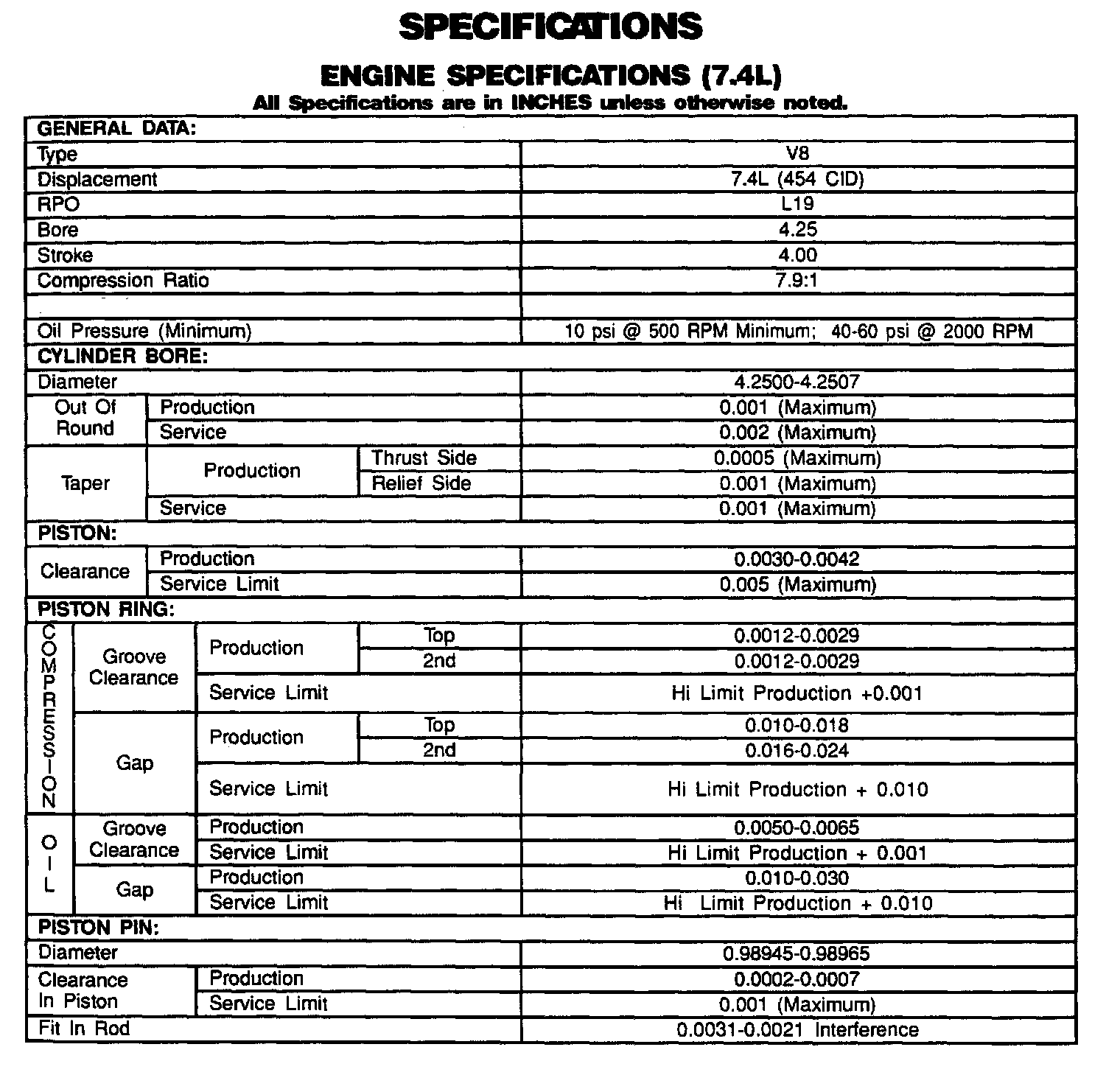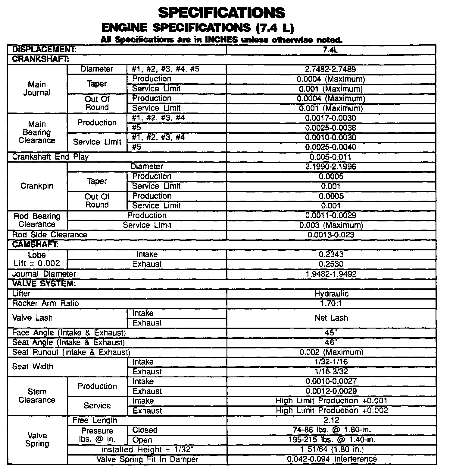 Engine Specifications: