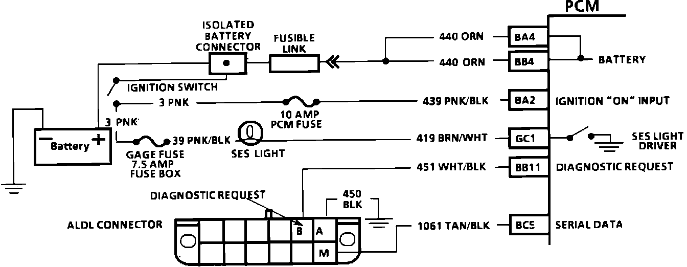 2. This test ensures that the PCM recognizes the diagnostic request signal from the ALDL and is controlling the "Service Engine Soon" light properly.