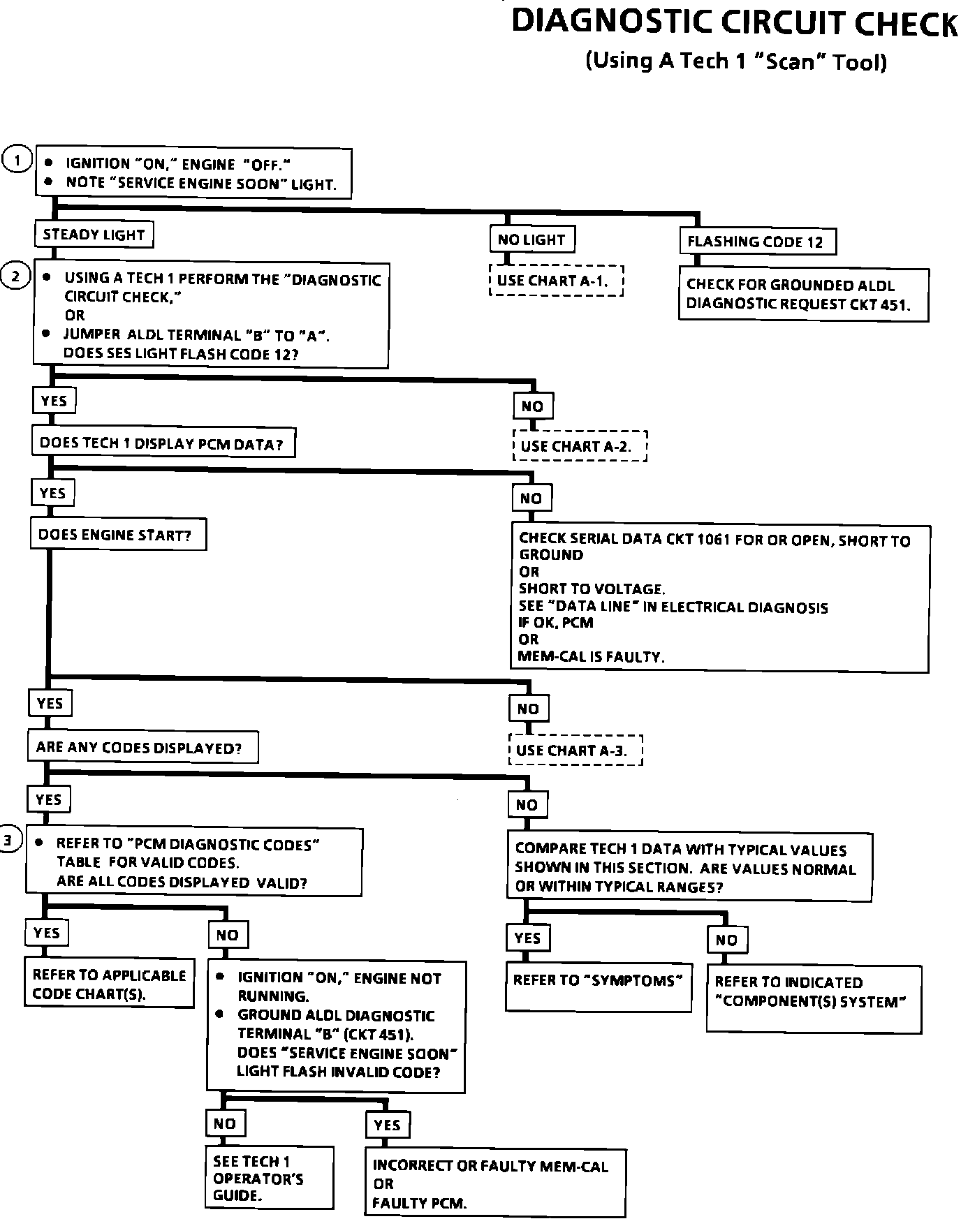 3. If an invalid code is displayed, the Tech 1, PCM or MEM-CAL can be at fault. "Flashing" the code by grounding ALDL terminal "B" isolates the cause of the invalid code.
