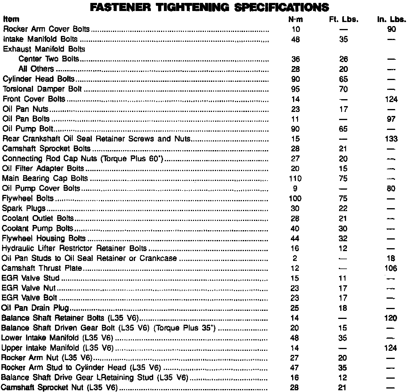 Fastener Tightening Specifications - Engine