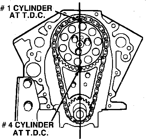 ^ Place number one piston at top dead center with the marks on the camshaft and crankshaft sprockets aligned (number four firing) (figure 7).