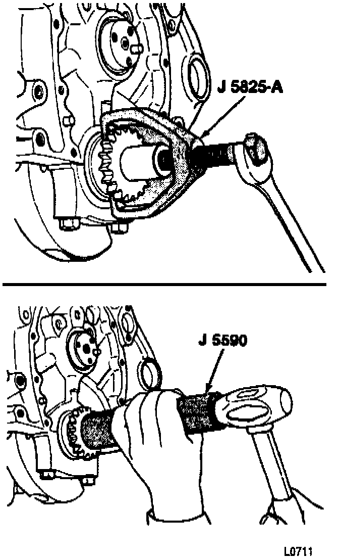Tools Required: J 5825-A Crankshaft Sprocket Puller