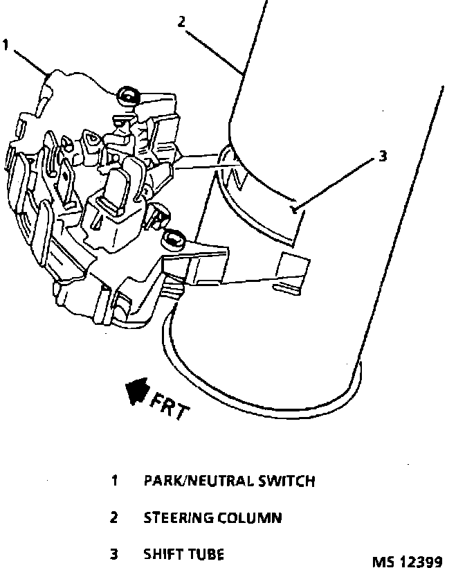 2. Move the gear selector to "Park" position. The switch housing and housing back should ratchet, providing proper switch adjustment.
