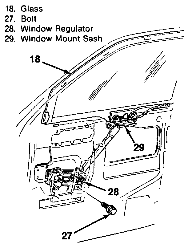 4. Bolts securing the regulator to the door inner panel.