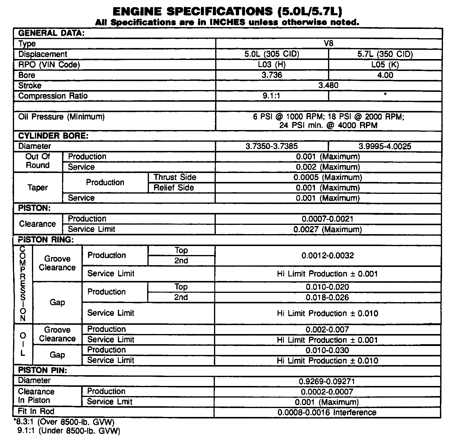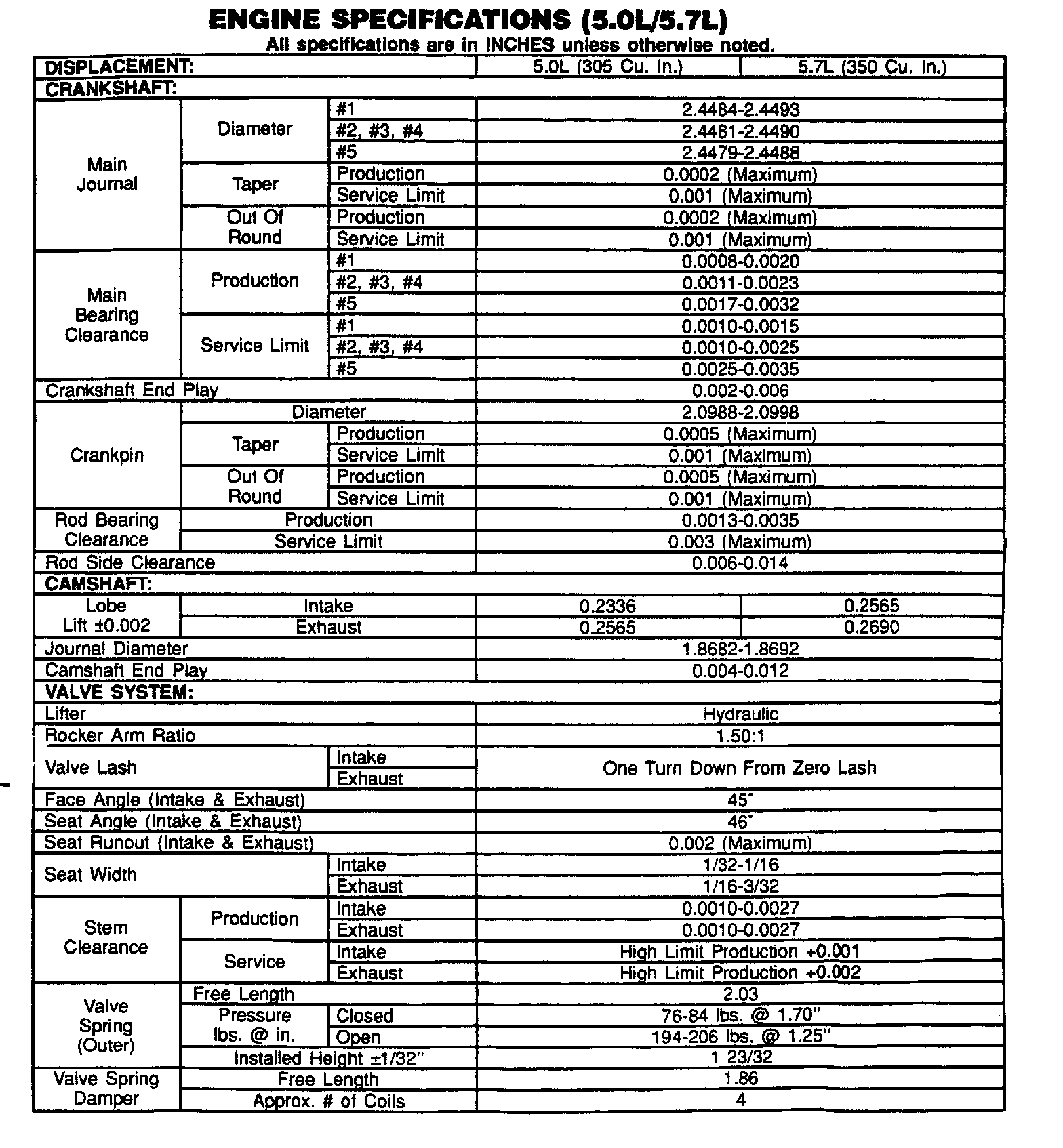 Engine Specifications: