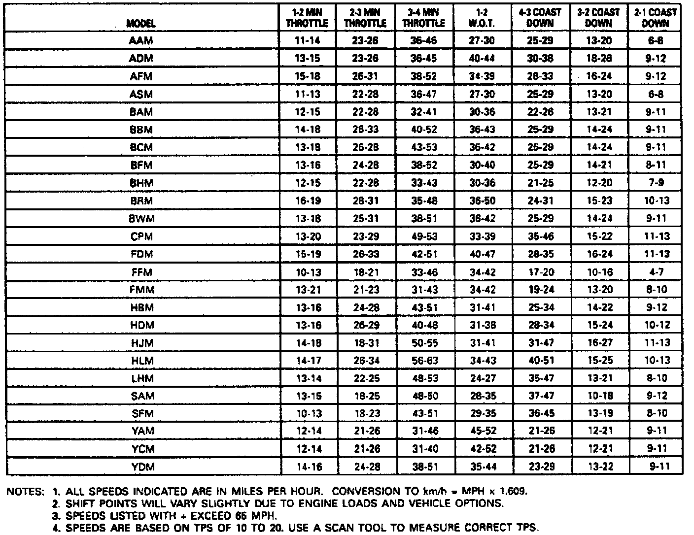 Shift Speed Charts