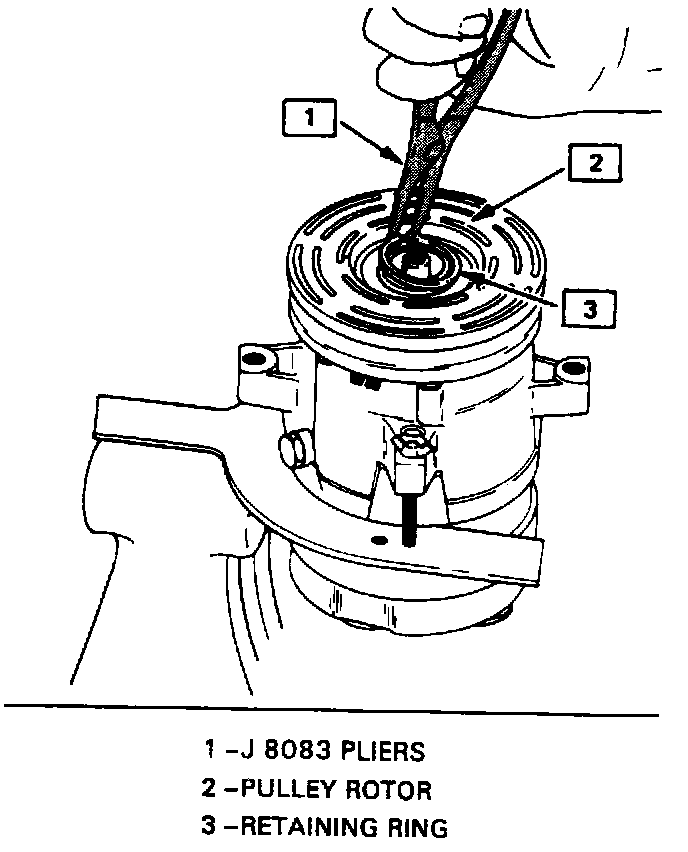 Removing Pulley Rotor & Bearing Assembly Retaining Ring:
