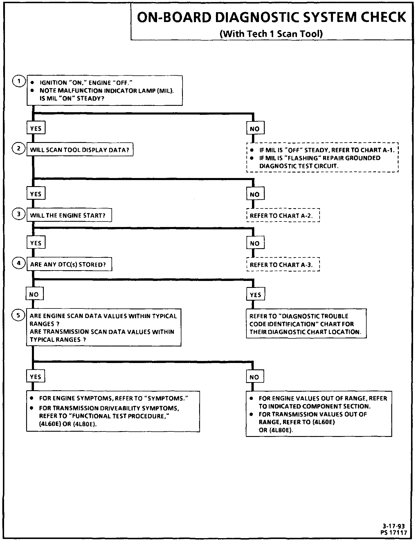 The on-board diagnostic system check is an organized approach to identifying a problem created by a control module system malfunction. It must be the starting point for any driveability complaint diagnosis, because it directs the service technician to the next logical step in diagnosing the complaint. Understanding the chart and using it correctly will reduce diagnostic time and prevent the unnecessary replacement of good parts.