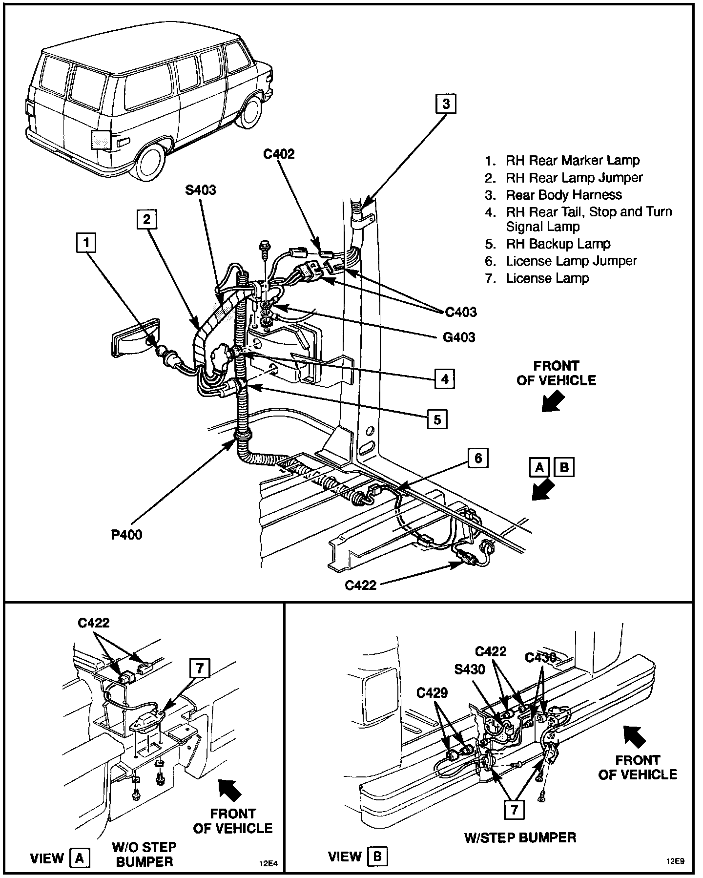 RH Rear Lamps And Wiring - Passenger And Panel Van:
