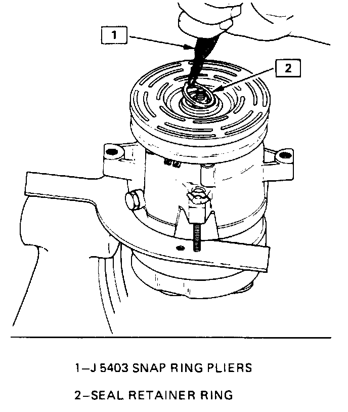 4. Remove the shaft seal retainer ring, using snap ring pliers J 5403.