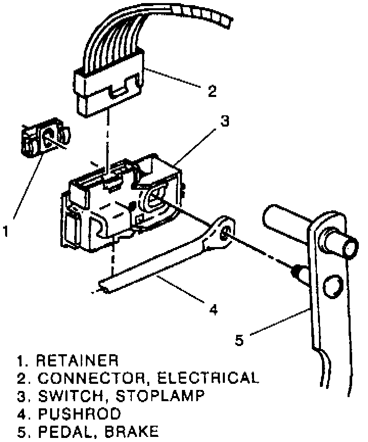 3. Remove retainer from brake pedal pin, Fig. 4.