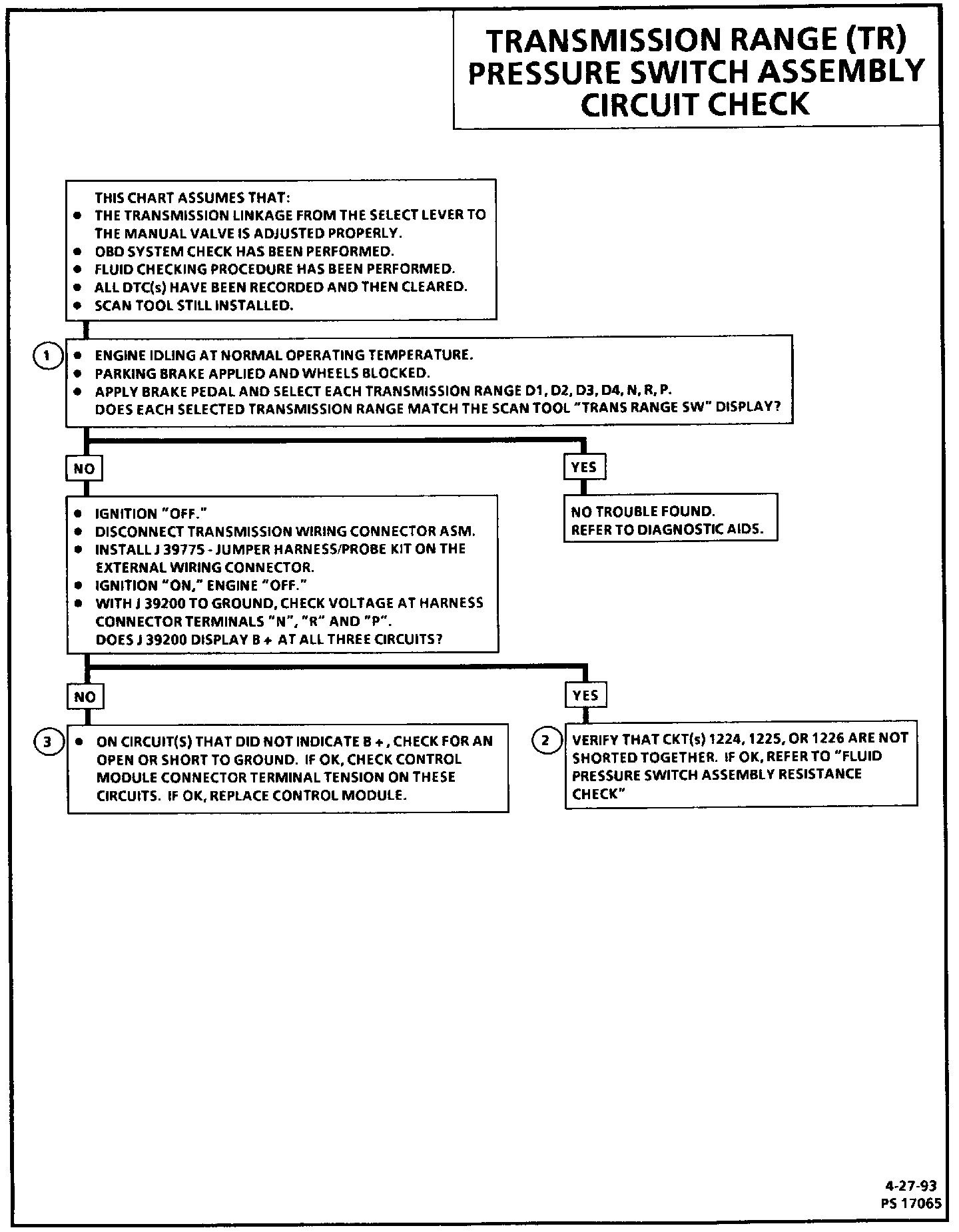 Transmission Range (TR) Pressure Switch Assembly Circuit Check