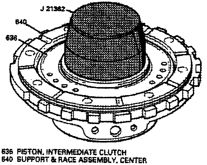 3. Install clutch piston on center support using seal protector tool No. J-21362 or equivalent.