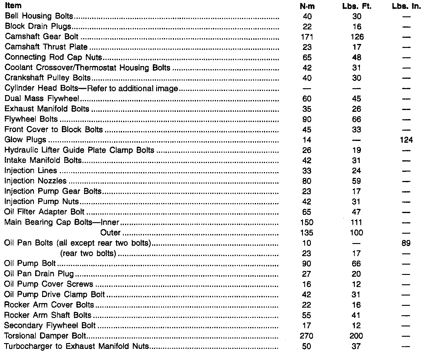 Fastener Tightening Specifications - Engine