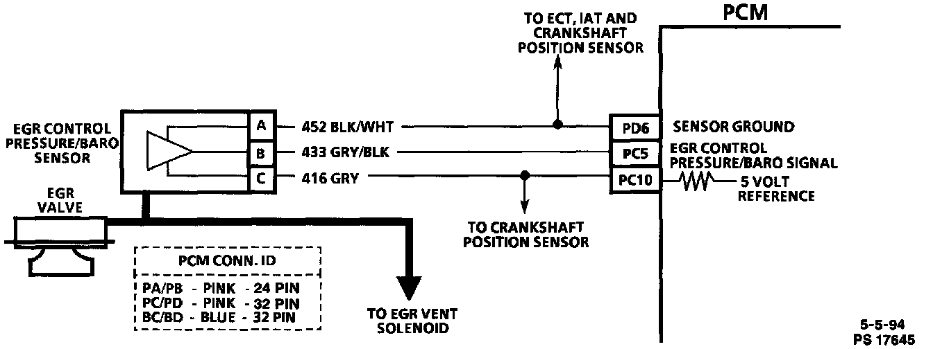 An Exhaust Gas Recirculation (EGR) control pressure/Barometric Absolute Pressure (BARO) sensor is used to monitor the amount of vacuum in the EGR circuit. It senses the actual vacuum in the EGR vacuum line and sends a signal back to the Powertrain Control Module (PCM). The signal is compared to the EGR duty cycle calculated by the PCM. On vehicles not equipped with EGR, this sensor is only used for a BARO reading.