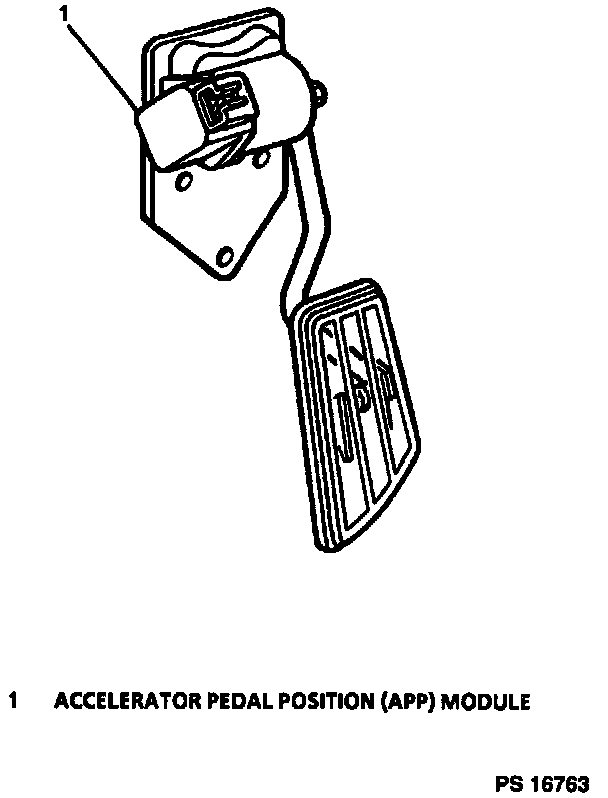 A scan tool reads APP 1 position in voltage, and should read about 0.50 volt while the engine is idling. Voltage should increase at a steady rate as accelerator pedal is moved to Wide Open Throttle (WOT). APP 2 position is also read in voltage, and should read about 4.5 volts at idle, and should steadily decrease to a about 1.5 volts as accelerator pedal is moved to WOT. APP 3 is also read in voltage, and should read about 4.0 volts at idle, and should steadily decrease to about 2.0 volts. Its possible idle voltage may vary, because the PCM has a "learning" ability which allows it to make corrections for minor variations.