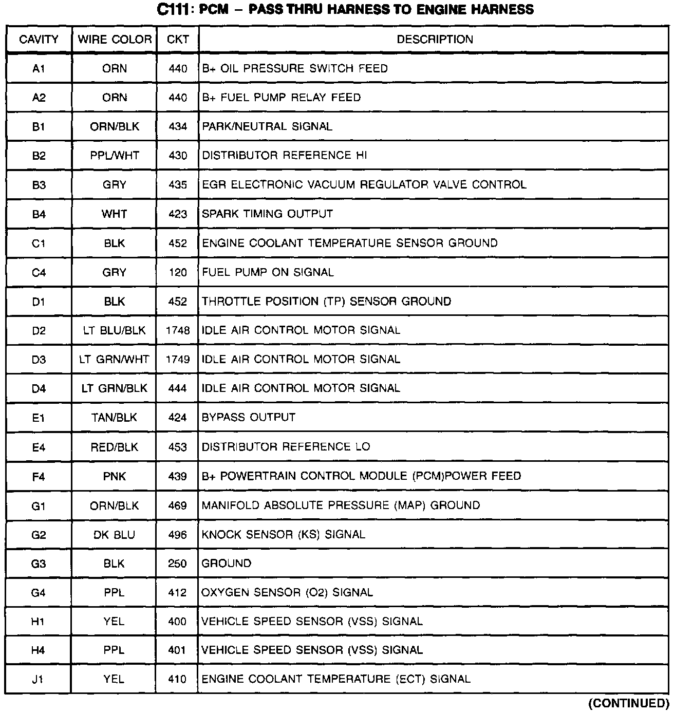 C111: PCM-Pass Thru Harness To Engine Harness (Part 2 Of 2):