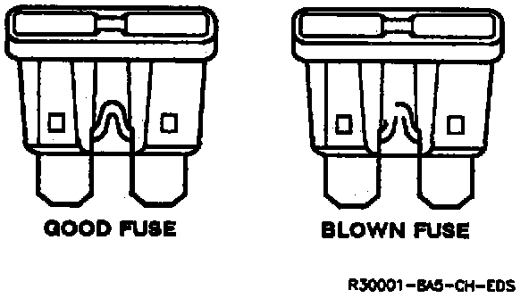 To determine whether or not a fuse is blown, remove the suspect fuse and examine the element in the fuse for a break. If the element is broken, replace the fuse with one of equal current rating.