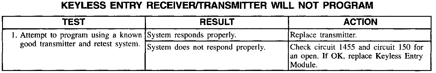 Keyless Entry Receiver/Transmitter Will Not Program: