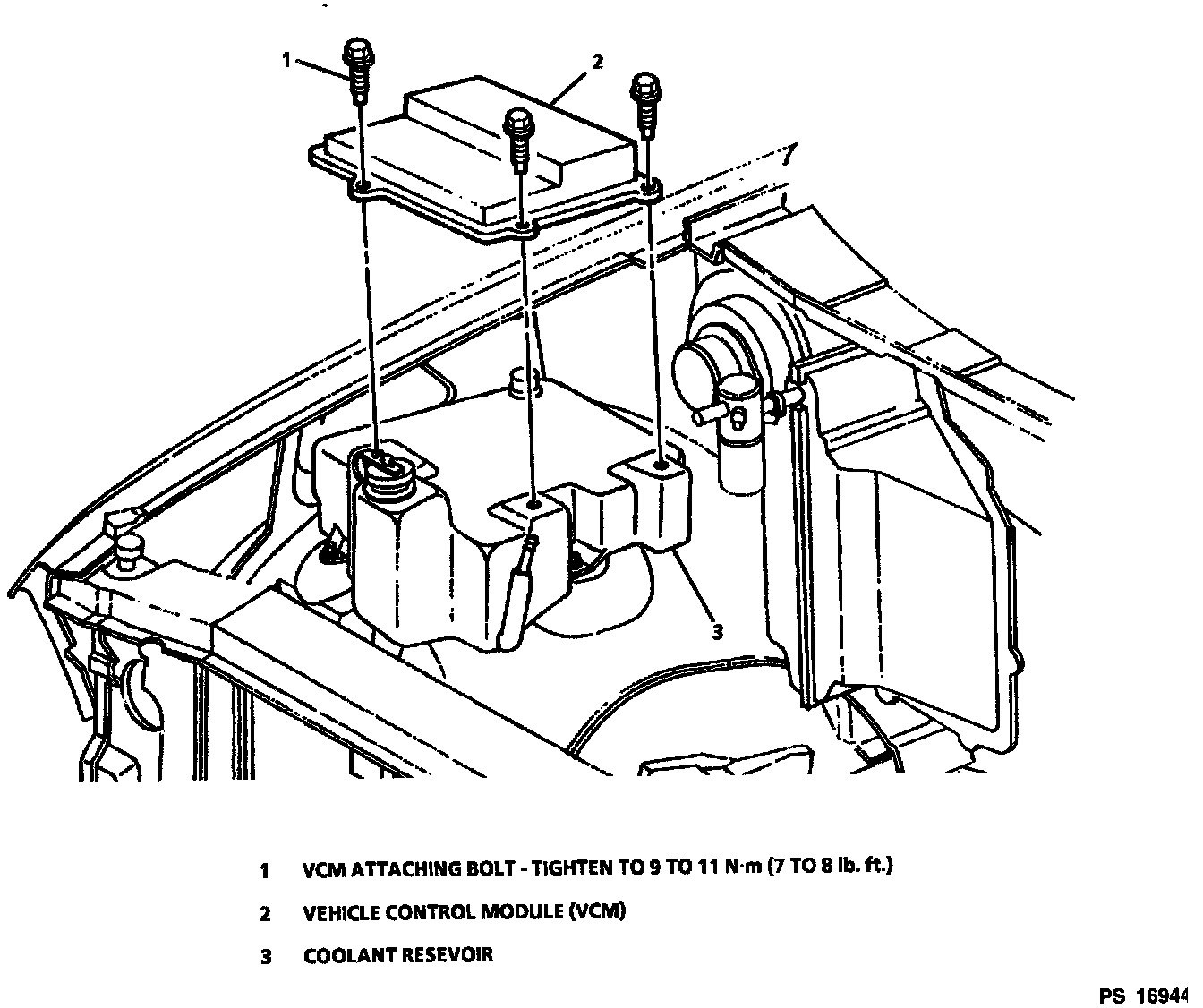 NOTE: When replacing the production VCM with a service VCM (controller), it is important to transfer the broadcast code and production VCM number to the service VCM label. This will allow positive identification of VCM parts throughout the service life of the vehicle. Also transfer the PROM.