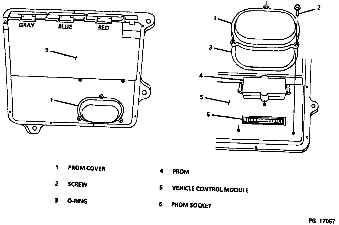 NOTE: Replacement VCM is supplied without a PROM, so care should be used when removing it from the defective VCM, because it will be reused in the new VCM.
